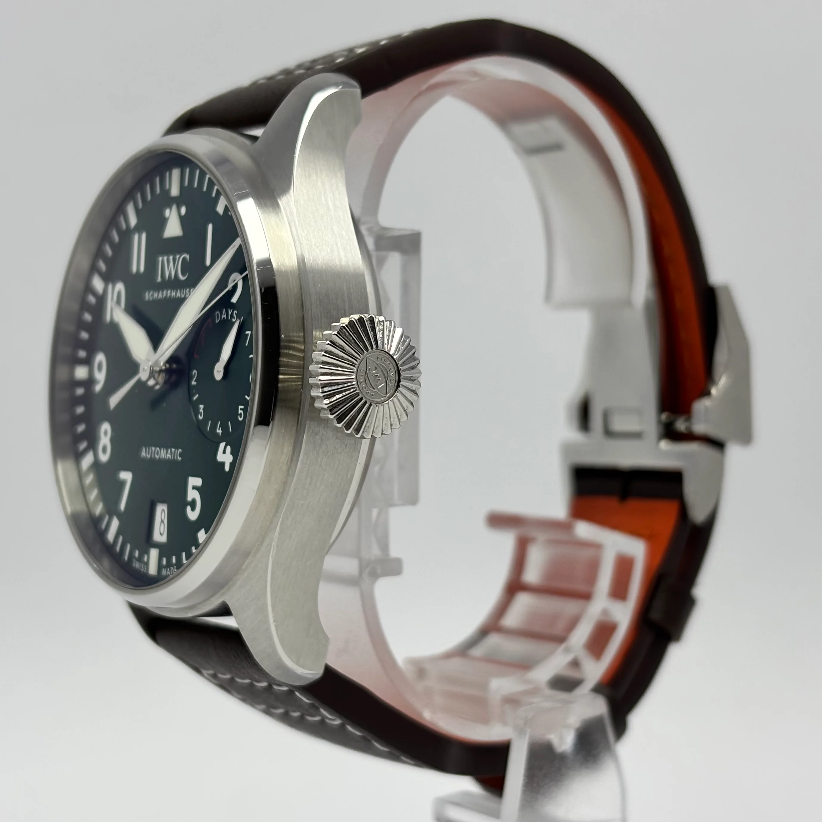 El IWC Big Pilot’s Watch, referencia IW501015, es una pieza emblemática que refleja la rica herencia de IWC Schaffhausen en la creación de instrumentos de precisión para la aviación. Este modelo se distingue por su esfera de color verde oscuro, inspirada en el “racing green” utilizado en los automóviles de carreras británicos desde 1903, otorgándole una personalidad única.