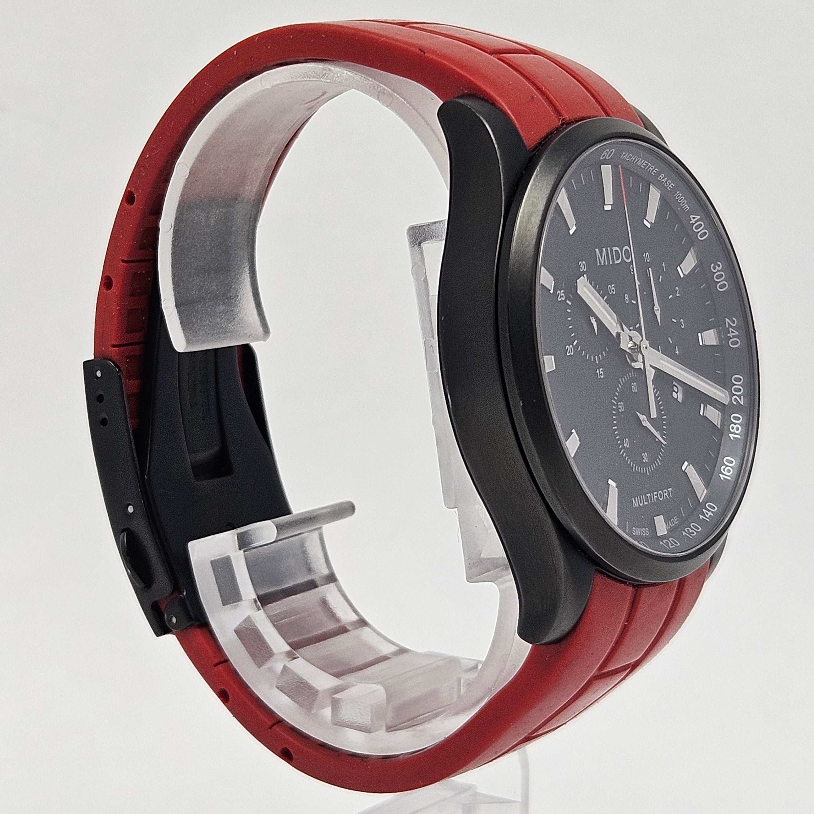 El MIDO Multifort Chronograph, es un reloj que fusiona diseño robusto y elegancia contemporánea, inspirado en la arquitectura del Puente de la Bahía de Sídney. Con una caja de acero inoxidable de 42 mm y una esfera negra con tres subesferas, este modelo ofrece una estética moderna y sofisticada. Equipado con un movimiento de cuarzo de alta precisión, el Multifort Chronograph garantiza un rendimiento confiable para el hombre activo y exigente. La correa de caucho rojo añade comodidad y resistencia, adaptándose perfectamente a un estilo de vida dinámico. Este reloj es ideal para quienes buscan un accesorio versátil que complemente tanto atuendos casuales como formales, reflejando buen gusto y funcionalidad en cada detalle.